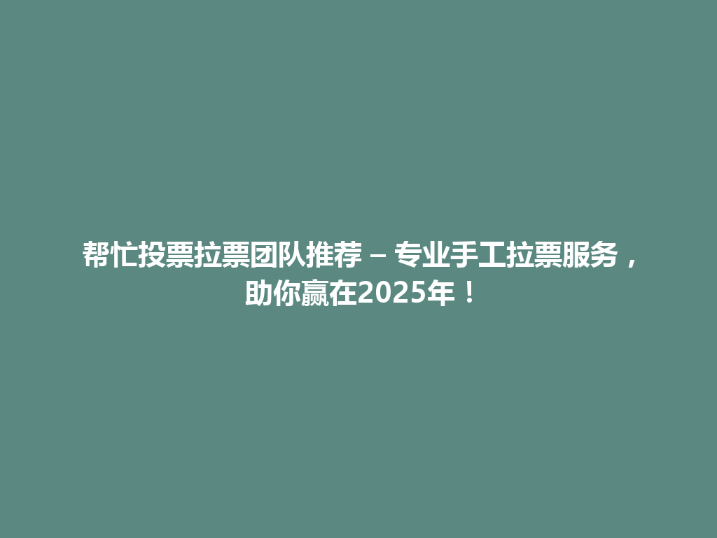 帮忙投票拉票团队的选择不仅能提升投票的效果,也能让你在竞争中更加有信心。2025年即将到来,如果你正在考虑参与投票活动,别犹豫,找一个专业团队,助你赢得宝贵的机会吧!