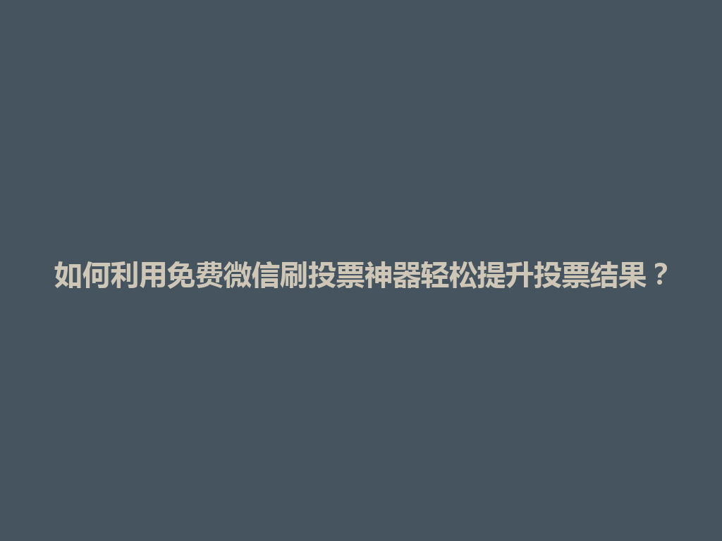 免费微信刷投票神器是一种可以通过微信平台帮助用户增加投票数量的工具。这些工具能在短时间内有效提升你的投票结果,让你在各种活动中更具竞争力。