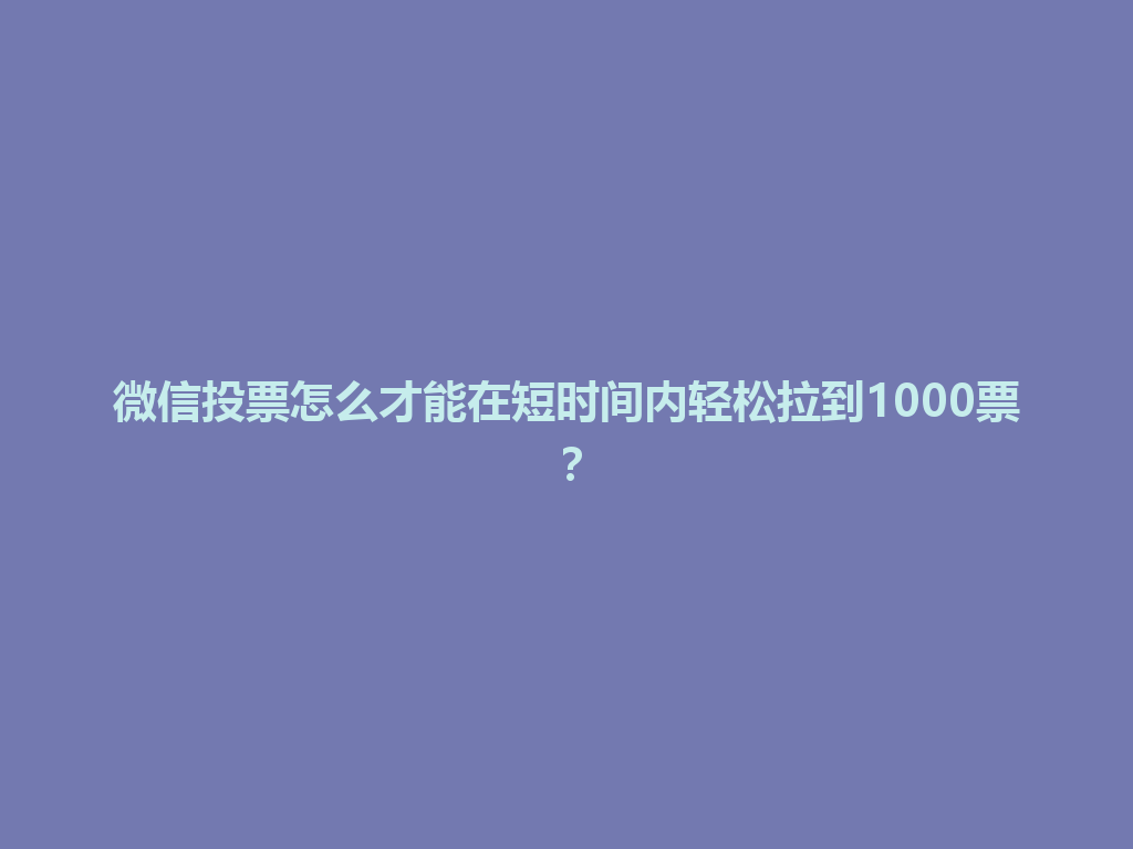 微信投票快速拉票1000票的绝招是什么?教你轻松搞定!