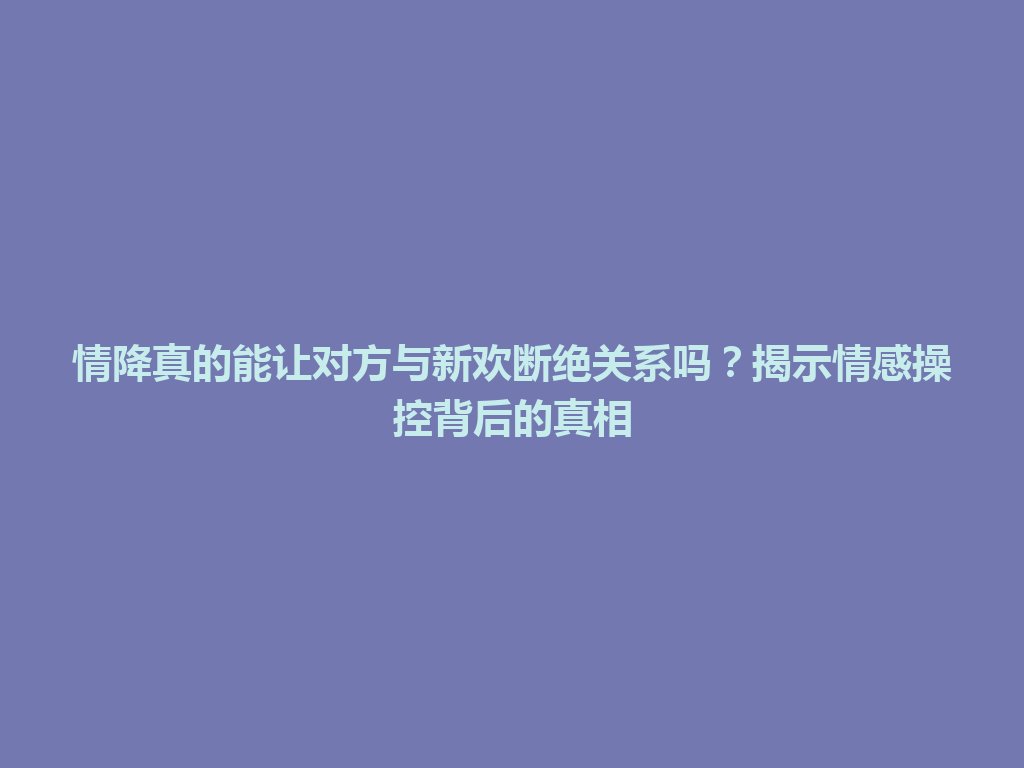 通过以上分析,我们可以看出,情降作为一种情感操控方法,确实在某些情况下能够促使对方与新欢断绝关系,但它的有效性依赖于双方情感的真实互动与理解。情感的建立与维持并非单靠操控所能实现,内心真实的连接与尊重才是长久关系的基础。在感情的世界里,真诚与坦诚往往比操控更为高手。
