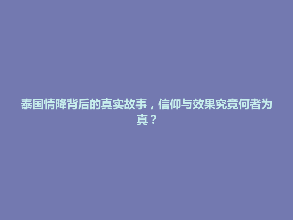 在这个持续探索的过程中,有必要明确,泰国情降的真实性不仅仅局限于其法事的效果,更重要的是它在文化和心理上的影响力。信仰与效果交织在一起,影响着参与者的思维与行为。对许多人而言,情降不仅是追求真爱的另一种选择,更在生活中构成了一种信仰的寄托。