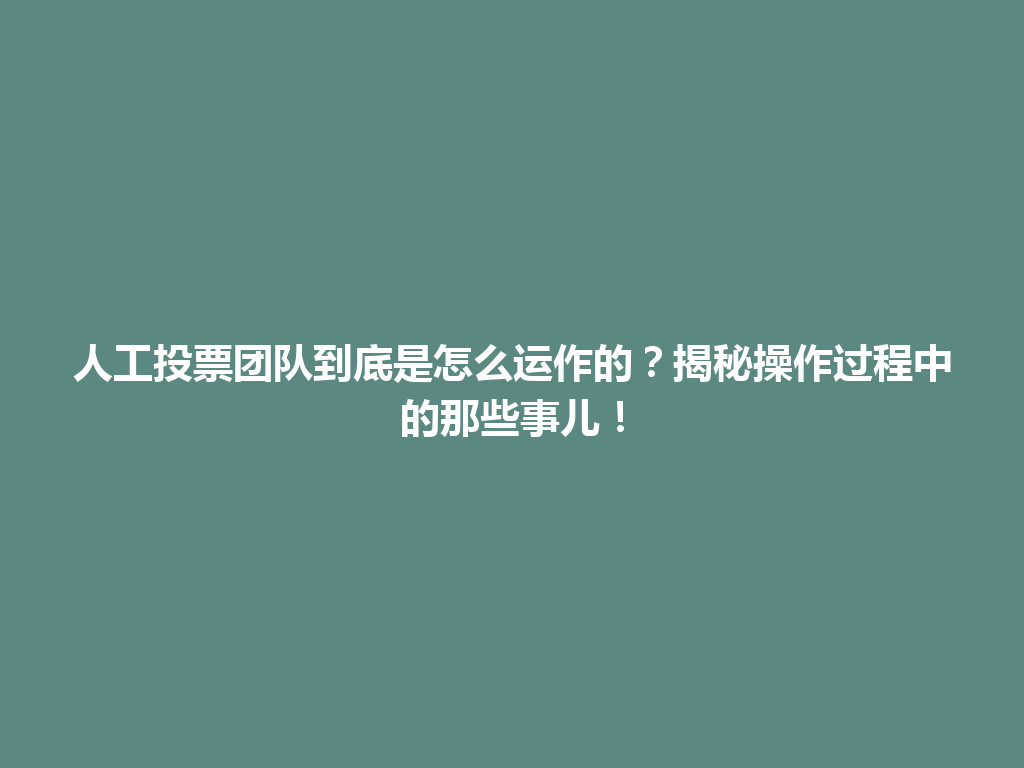 人工投票团队到底是怎么运作的?揭秘操作过程中的那些事儿!