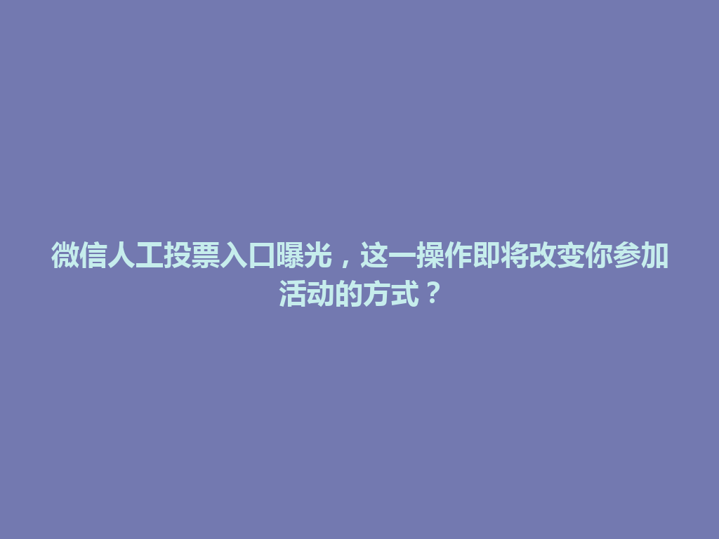 微信人工投票入口曝光,这一操作即将改变你参加活动的方式?