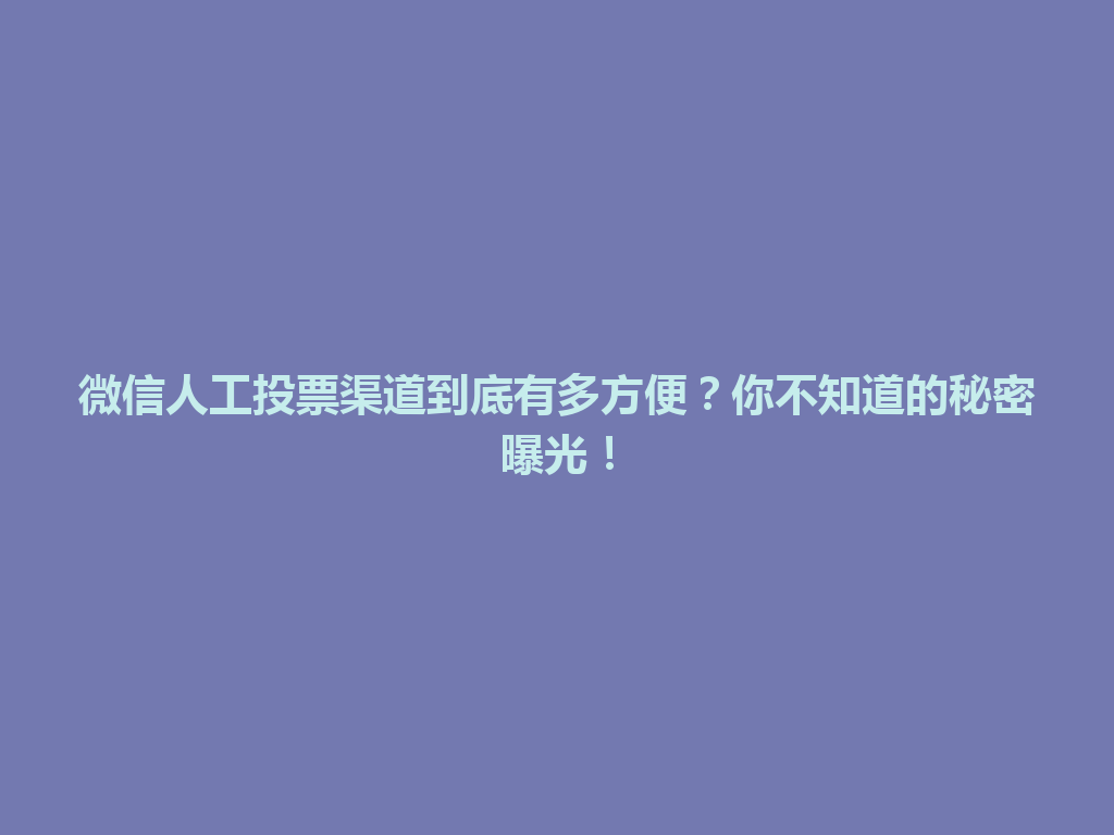 微信人工投票渠道到底有多方便?你不知道的秘密曝光!
