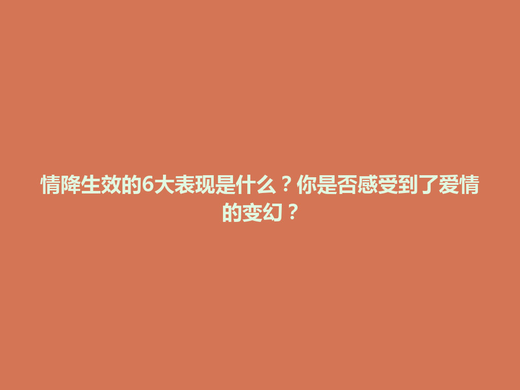 这些表现不仅可以帮助你判断情感的真实状态,也能促进双方进一步的理解和默契。如果你发现自己与伴侣之间出现了这些变化,那就意味着情降已经生效,爱情正悄然发生着美好的转变。