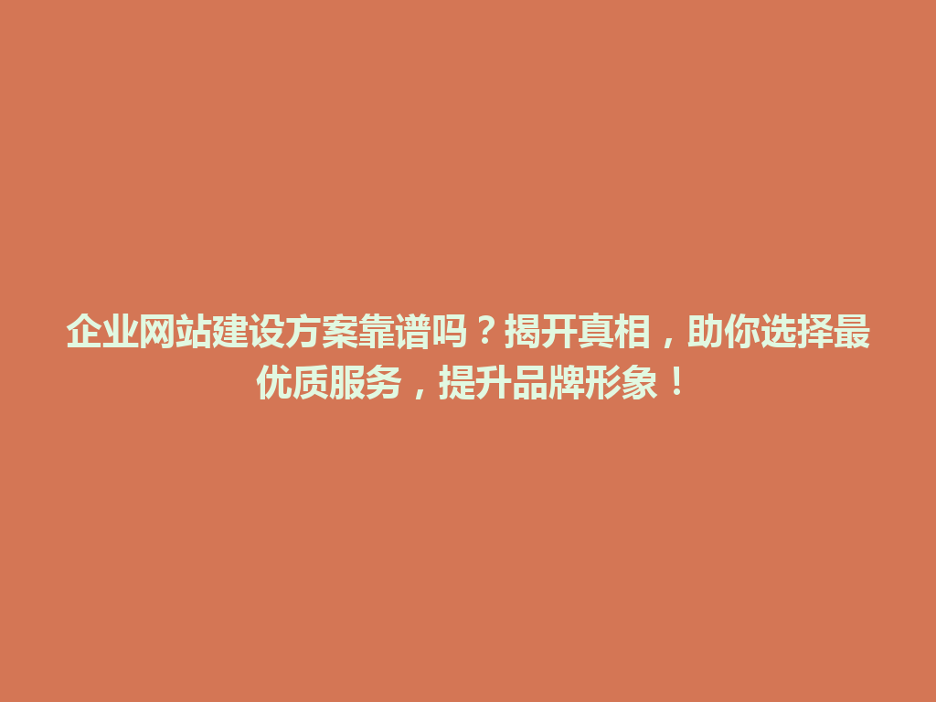 靠谱的企业网站建设方案需要全面考虑品牌形象、技术支持和用户体验三个方面,才能真正帮助企业提升竞争力与市场影响力。在选择方案时,切勿依据价格因素而忽视质量,确保所选服务能为你的品牌发展提供长远支持。